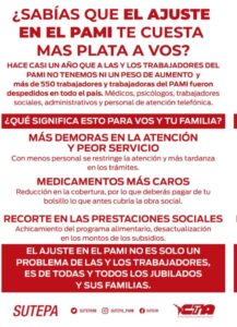 El programa financiero que está implementando el gobierno de Javier Milei a nivel nacional, beneficia a un grupo concentrado de actores mientras su motosierra va destruyendo día a dia el entramado social, afectando derechos básicos como por ejemplo el de la salud, y dentro de ese tópico, en particular el de la salud de los adultos mayores. A la afectación de la capacidad de compra con sus salarios, se le suma el recorte en las coberturas por parte de PAMI y también a la cuestión salarial de los trabajadores que en esa obra social atienden a los abuelos y abuelas.